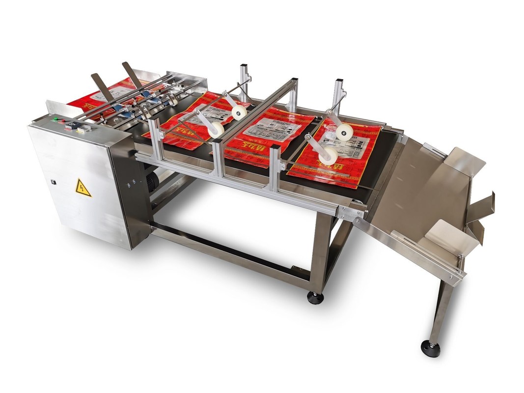 Used for automatically seperation of stacked packaging bags of cards and conveyors them onto the conveyor belt piece by piece so as to facilitate inkjet coding and thus reduce trifles of manual paging and make full use of the advantage of high speed coding of inkjet coding machien and improve printing efficiency.